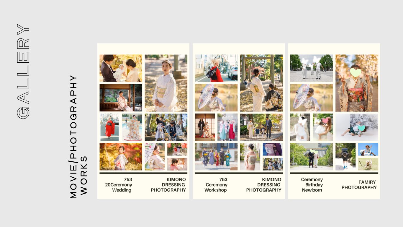 成人式、七五三、記念日撮影、成広告・プロフィール撮影など、